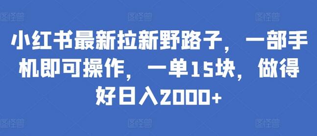 小红书最新拉新野路子,一部手机即可操作,一单15块,做得好日入2000+