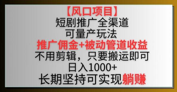 【风口项目】短剧推广全渠道最新双重收益玩法,推广佣金管道收益,不用剪辑,只要搬运即可