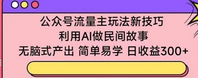 公众号流量主玩法新技巧,利用AI做民间故事 ,无脑式产出,简单易学,日收益300+