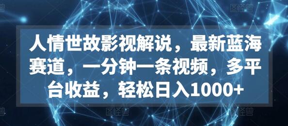 人情世故影视解说,最新蓝海赛道,一分钟一条视频,多平台收益,轻松日入1000+