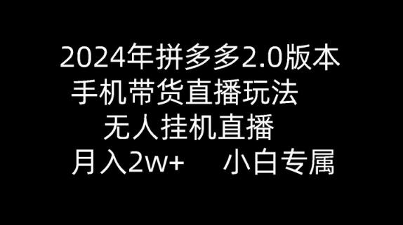 2024年拼多多2.0版本,手机带货直播玩法,无人挂机直播, 月入2w+, 小白专属