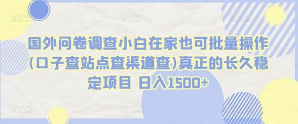国外问卷调查小白在家也可批量操作(口子查站点查渠道查)真正的长久稳定项目 日入1500+