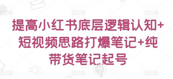 提高小红书底层逻辑认知+短视频思路打爆笔记+纯带货笔记起号
