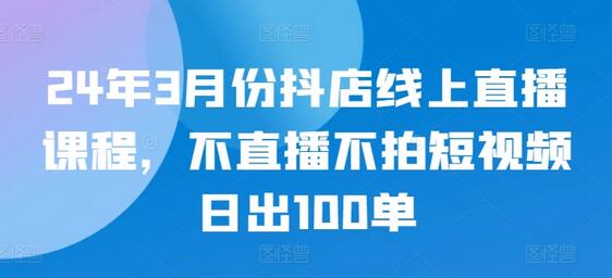 24年3月份抖店线上直播课程,不直播不拍短视频日出100单