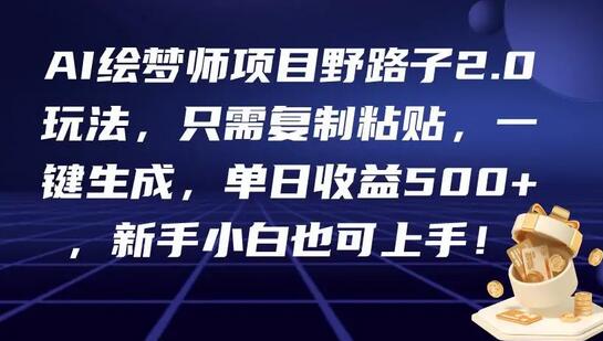 AI绘梦师项目野路子2.0玩法,只需复制粘贴,一键生成,单日收益500+,新手小白也可上手!