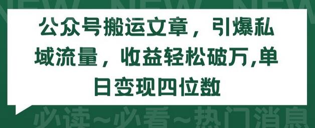 公众号搬运文章,引爆私域流量,收益轻松破万,单日变现四位数