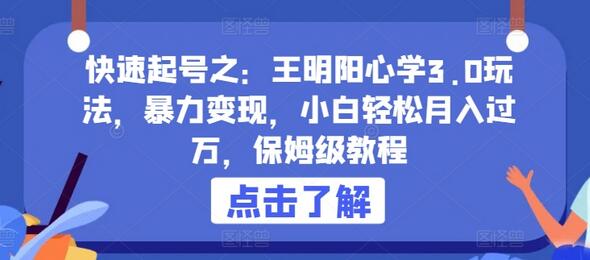 快速起号之:王明阳心学3.0玩法,暴力变现,小白轻松月入过万,保姆级教程