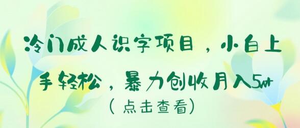 冷门成人识字项目,小白上手轻松,暴力创收月入5w+