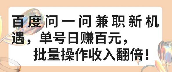 百度问一问兼职新机遇,单号日赚百元,批量操作收入翻倍