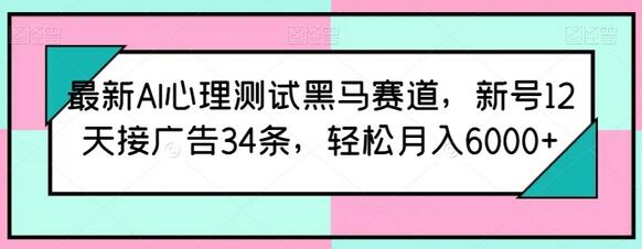 最新AI心理测试黑马赛道,新号12天接广告34条,轻松月入6000+