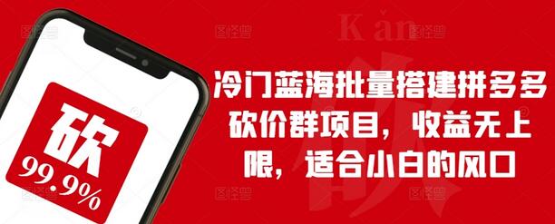 冷门蓝海批量搭建拼多多砍价群项目,收益无上限,适合小白的风口