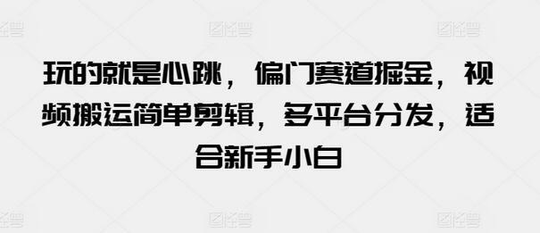 很多人都喜欢看一些让人心跳加速的视频,这里说的不是美女类的,而是那种极限运动的视频,这类视频国内很少有人原创,但是外网不缺这类视频,我们要做的就是去外网搬运这种视频,然后把多个视频剪辑拼接、去重,再添加背景音乐以后发布,可以多个平台发布,坚持发作品,收益还是不错的。