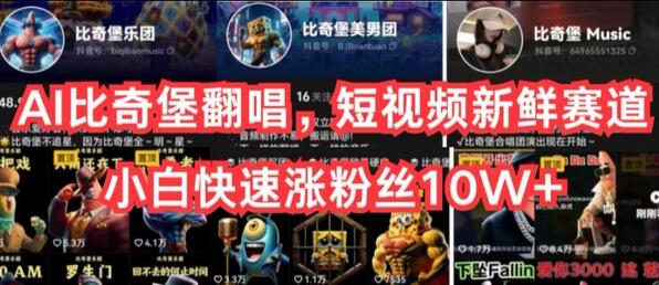 AI比奇堡翻唱,短视频新鲜赛道,小白快速涨粉丝10W+