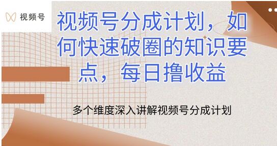 视频号分成计划,如何快速破圈的知识要点,每日撸收益