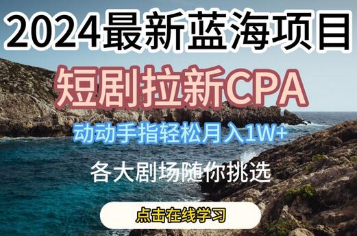 2024最新蓝海项日,短剧拉新CPA,动动手指轻松月入1W,全各大剧场随你挑选【揭秘】