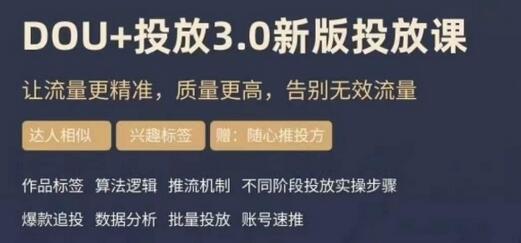 【勋哥】dou+豆荚投放实操课3.0新版,让流量更精准,质量更高,告别无效流量