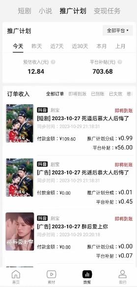 渠道专属补贴网剧推广佣金高达50%~80%,即使用户不充值,也会有广告收益进行兜底,只要做就有钱。