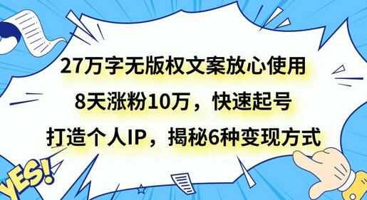 27万字无版权文案放心使用,8天涨粉10万,快速起号,打造个人IP,揭秘6种变现方式