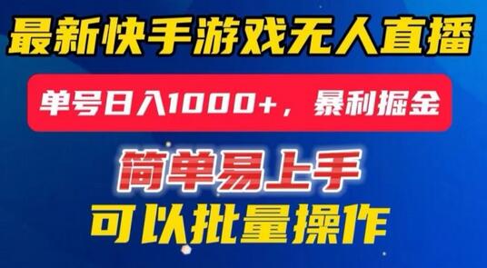 快手无人直播暴利掘金,24小时无人直播,单号日入1000+