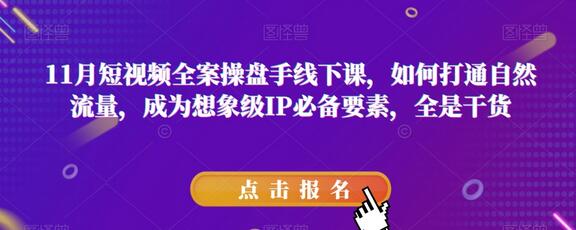 11月短视频全案操盘手线下课,如何打通自然流量,成为想象级IP必备要素,全是干货