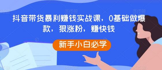 抖音带货暴利赚钱实战课,0基础做爆款,狠涨粉,赚快钱