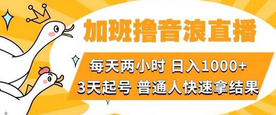 加班撸音浪直播,每天两小时,日入1000+,直播话术才3句,3天起号,普通人快速拿结果
