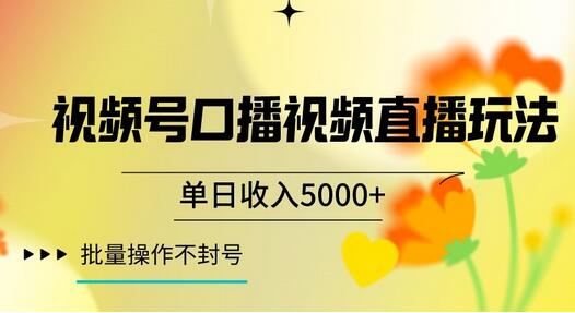 视频号囗播视频直播玩法,单日收入5000+,批量操作不封号