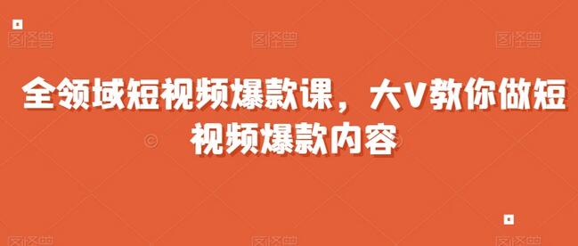 全领域短视频爆款课,全网两千万粉丝大V教你做短视频爆款内容