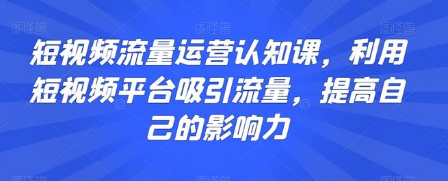 短视频流量运营认知课,利用短视频平台吸引流量,提高自己的影响力