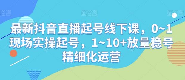 最新抖音直播起号线下课,0~1现场实操起号,1~10+放量稳号精细化运营