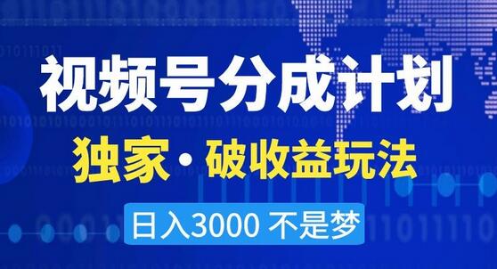 视频号分成计划,独家·破收益玩法,日入3000不是梦