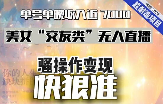 美女“交友类”无人直播,变现快、狠、准,单号单晚收入近7000。2024,超耐造“男粉”变现项目