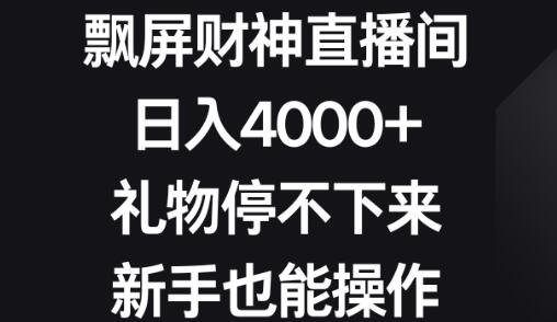 飘屏财神直播间,日入4000+,礼物停不下来,新手也能操作