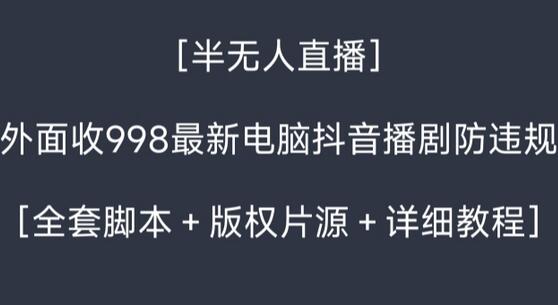 外面收998最新半无人直播电脑抖音播剧防违规【全套脚本+版权片源+详细教程】