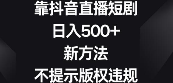 靠抖音直播短剧,日入500+,新方法、不提示版权违规
