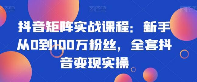 抖音矩阵实战课程:新手从0到100万粉丝,全套抖音变现实操