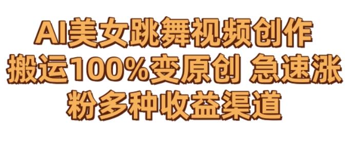 AI美女跳舞视频0成本创作,骚操作搬运,100%变原创,急速涨粉,多种收益渠道