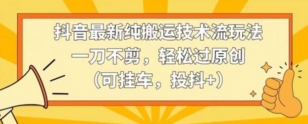 抖音最新纯搬运技术流玩法,一刀不剪,轻松过原创(可挂车,投抖+)