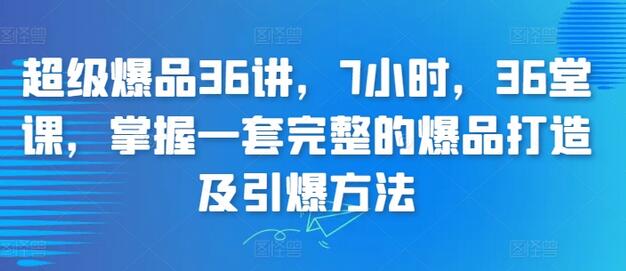 超级爆品36讲,7小时,36堂课,掌握一套完整的爆品打造及引爆方法