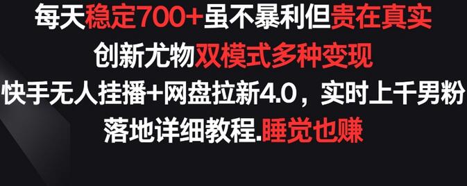 每天稳定700+,收益不高但贵在真实,创新尤物双模式多渠种变现,快手无人挂播+网盘拉新4.0