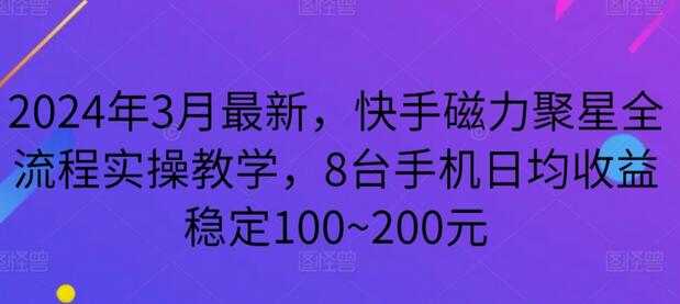 2024年3月最新,快手磁力聚星全流程实操教学,8台手机日均收益稳定100~200元