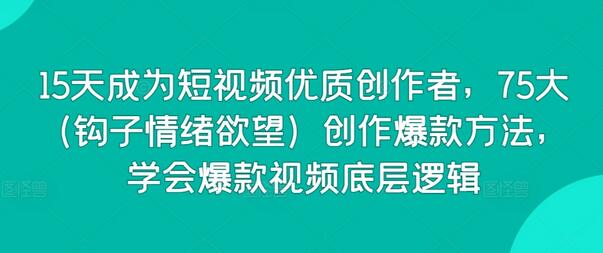 15天成为短视频优质创作者,75大(钩子情绪欲望)创作爆款方法,学会爆款视频底层逻辑