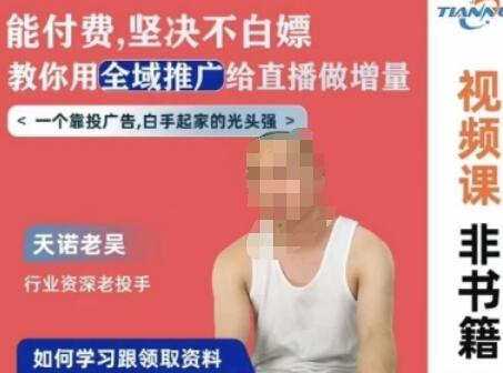 天诺老吴全域推广线上课,能付费坚决不白嫖,教你用全域推广给直播做增量