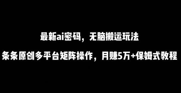 最新ai流量密码,傻瓜式搬运玩法,条条原创,多平台矩阵操作,月赚5万+保姆式教程