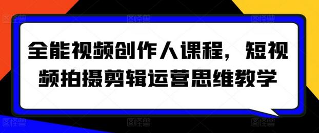 全能视频创作人课程,短视频拍摄剪辑运营思维教学
