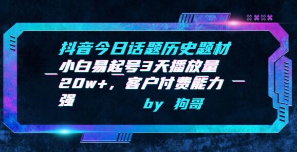 抖音今日话题历史题材-小白易起号3天播放量20w+,客户付费能力强