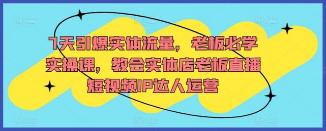 7天引爆实体流量,老板必学实操课,教会实体店老板直播短视频IP达人运营