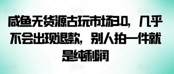 咸鱼无货源古玩市场3.0,几乎不会出现退款,别人拍一件就是纯利润