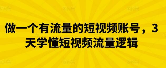 做一个有流量的短视频账号,3天学懂短视频流量逻辑