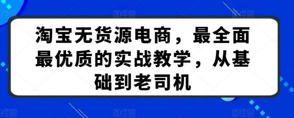淘宝无货源电商,最全面最优质的实战教学,从基础到老司机